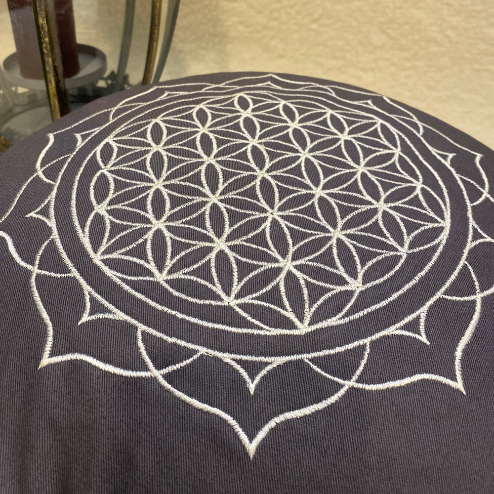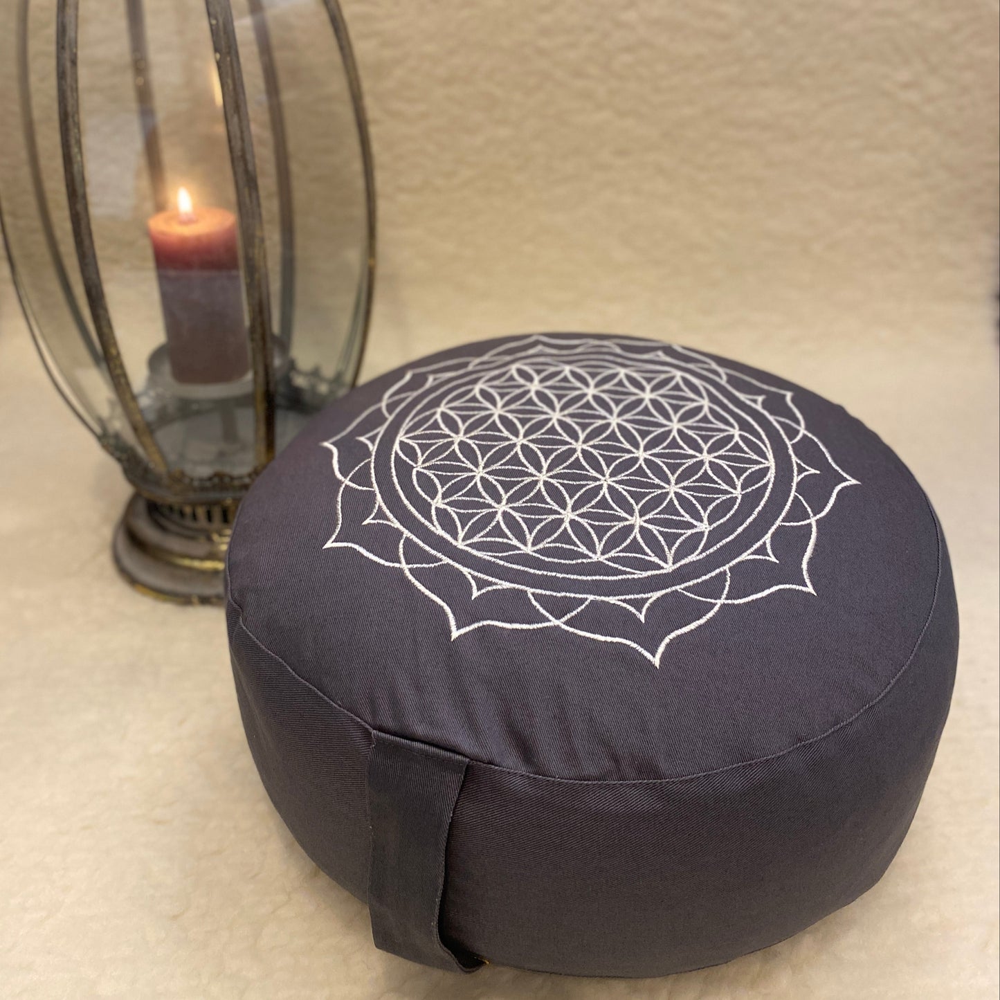 Die Blume des Lebens auf dem Bezug erinnert dich an das Wesentliche: Wir sind alle verbunden – auch mit dem inneren Frieden, den du gerade suchst. Und weil jede Praxis anders ist, kannst du die Höhe des Kissens ganz einfach anpassen: einfach ein bisschen Füllung raus oder rein, je nach Laune und Lotussitz.