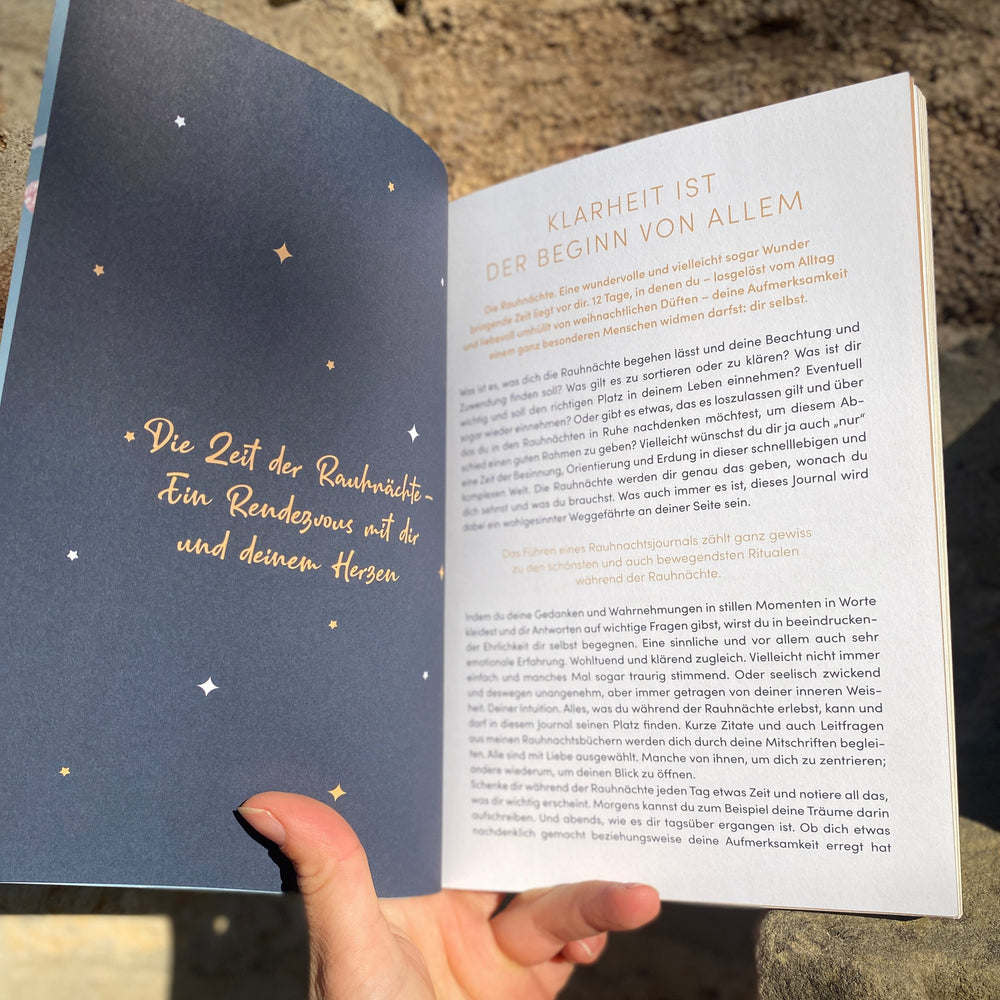 Zwischen den Jahren mal nicht funktionieren, sondern fühlen? Dieses wunderschön illustrierte Journal ist dein persönlicher Begleiter durch die magischste Zeit des Jahres. Hier hältst du fest, was dich bewegt - mit Raum für Gedanken, Erkenntnisse und all die kleinen Aha-Momente, die in den Rauhnächten auftauchen.