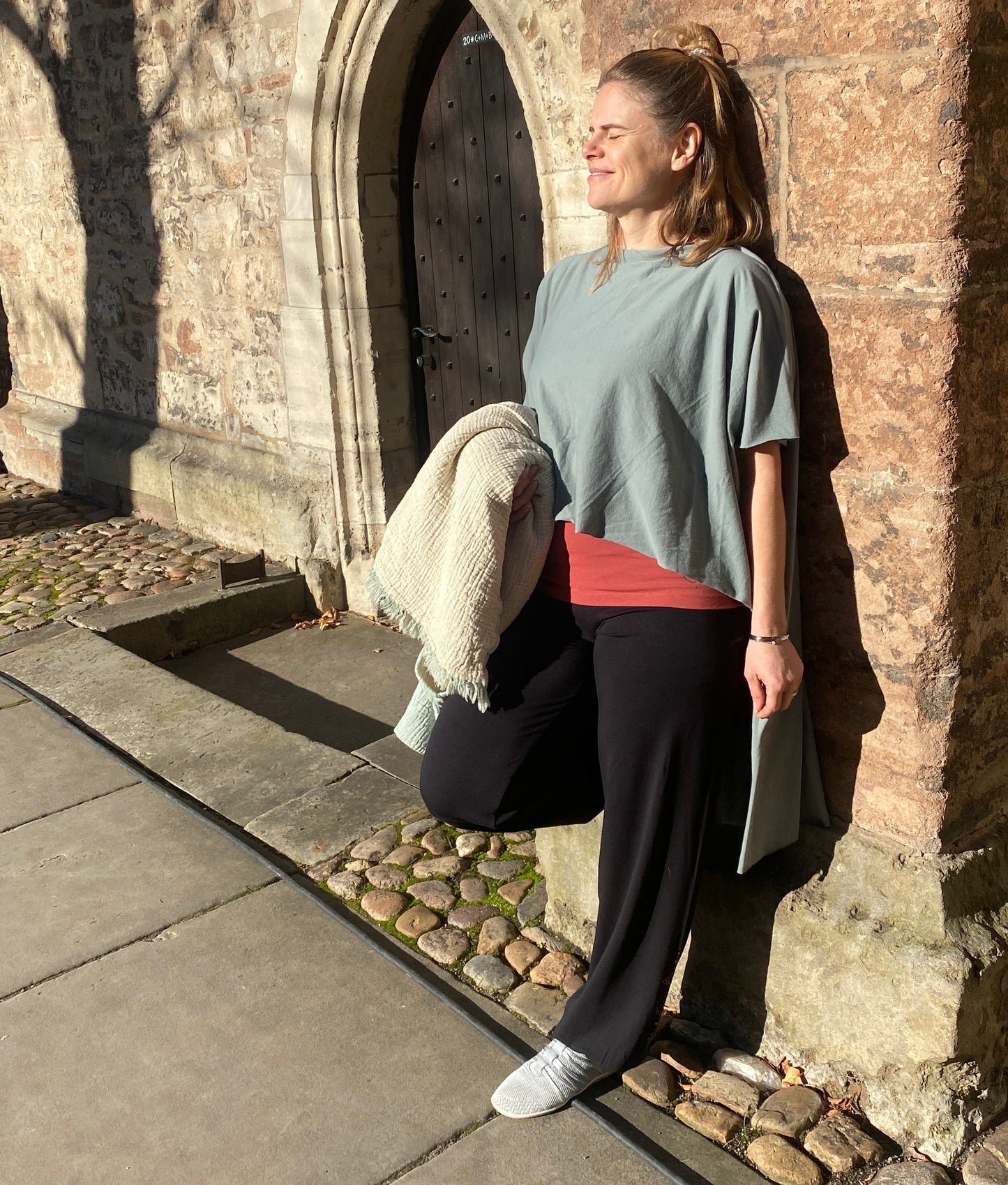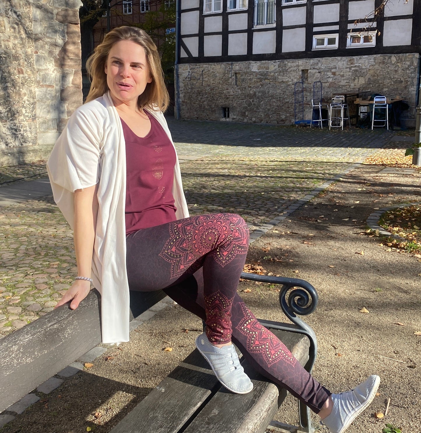 Die asymmetrische Überlappung sorgt für eine moderne Silhouette und lässt sich bei Bedarf auch als stylische Weste tragen. Rohe, gewellte Kanten setzen einen bewusst natürlichen Akzent und unterstreichen den handwerklichen Charakter des Materials. Ideal für Yoga-Liebhaber, die Wert auf Nachhaltigkeit legen und dabei nicht auf Eleganz verzichten möchten. Ein vielseitiges Kleidungsstück, das sich mühelos vom Studio in den Alltag integrieren lässt.