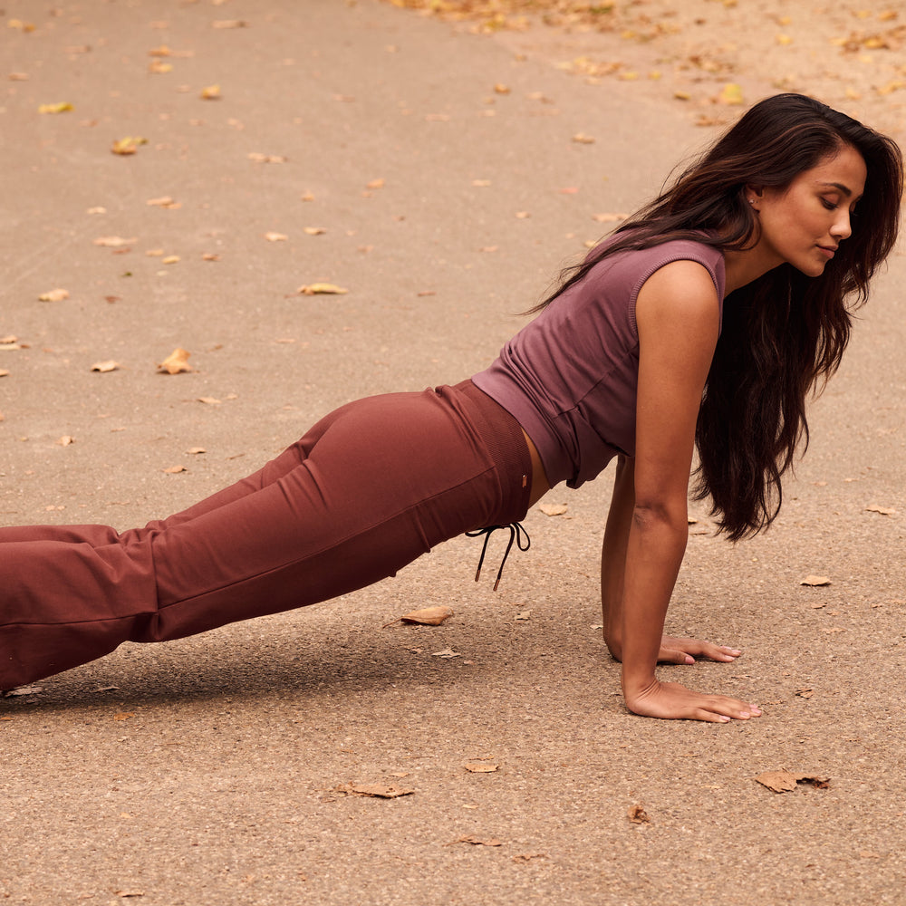 Hergestellt aus dehnbarem Bio-Baumwollstoff – ideal für Yoga, entspanntes Stunden zuhause oder für einen lässigen Look im Alltag. Komfort trifft Nachhaltigkeit.