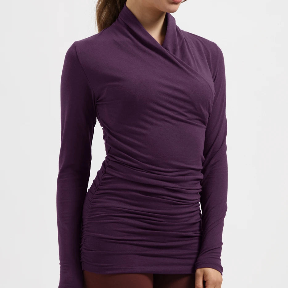 Dieses Damen-Top überzeugt mit seitlichen Raffungen, langen Ärmeln und einer überlangen Passform. Der fließende, atmungsaktive Stoff ermöglicht uneingeschränkte Bewegungsfreiheit und hohen Komfort – ideal für kalte Studio- oder Outdoor-Sessions.