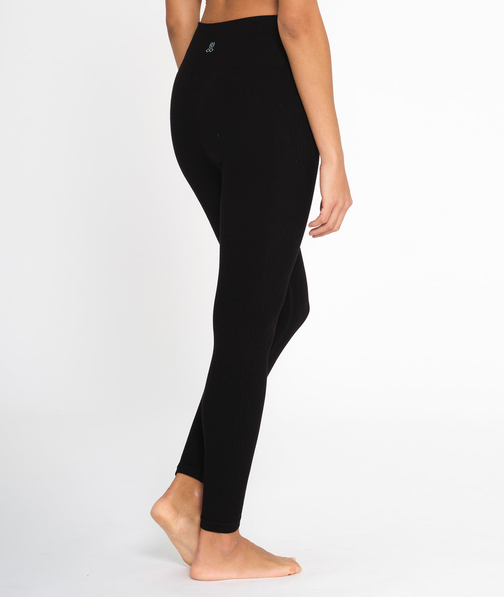 Diese gerippte schwarze Leggins von Yoga Searcher ist stretchig und bequem gleichzeitig. Sie versteckt kleine Dellen (auch wenn du keine hast) und macht eine super Figur. Vorne am Bund ist sie leicht gerafft, was zusätzlich etwas Spannung auf dem Bauch entstehen lässt und dadurch auch etwas kaschiert (was nicht da ist ;-)