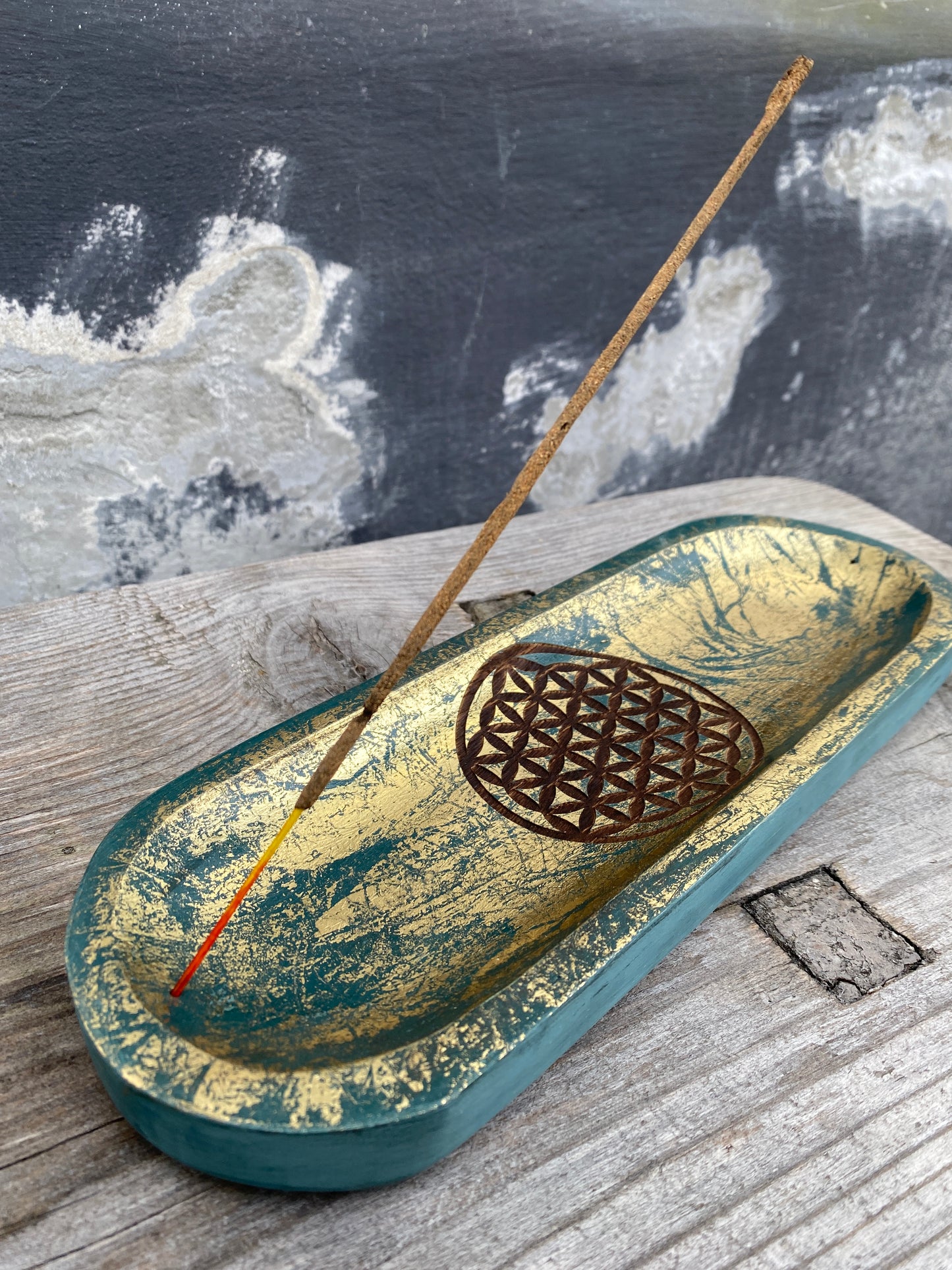 Räucherstäbchenhalter Holz - Blume des Lebens