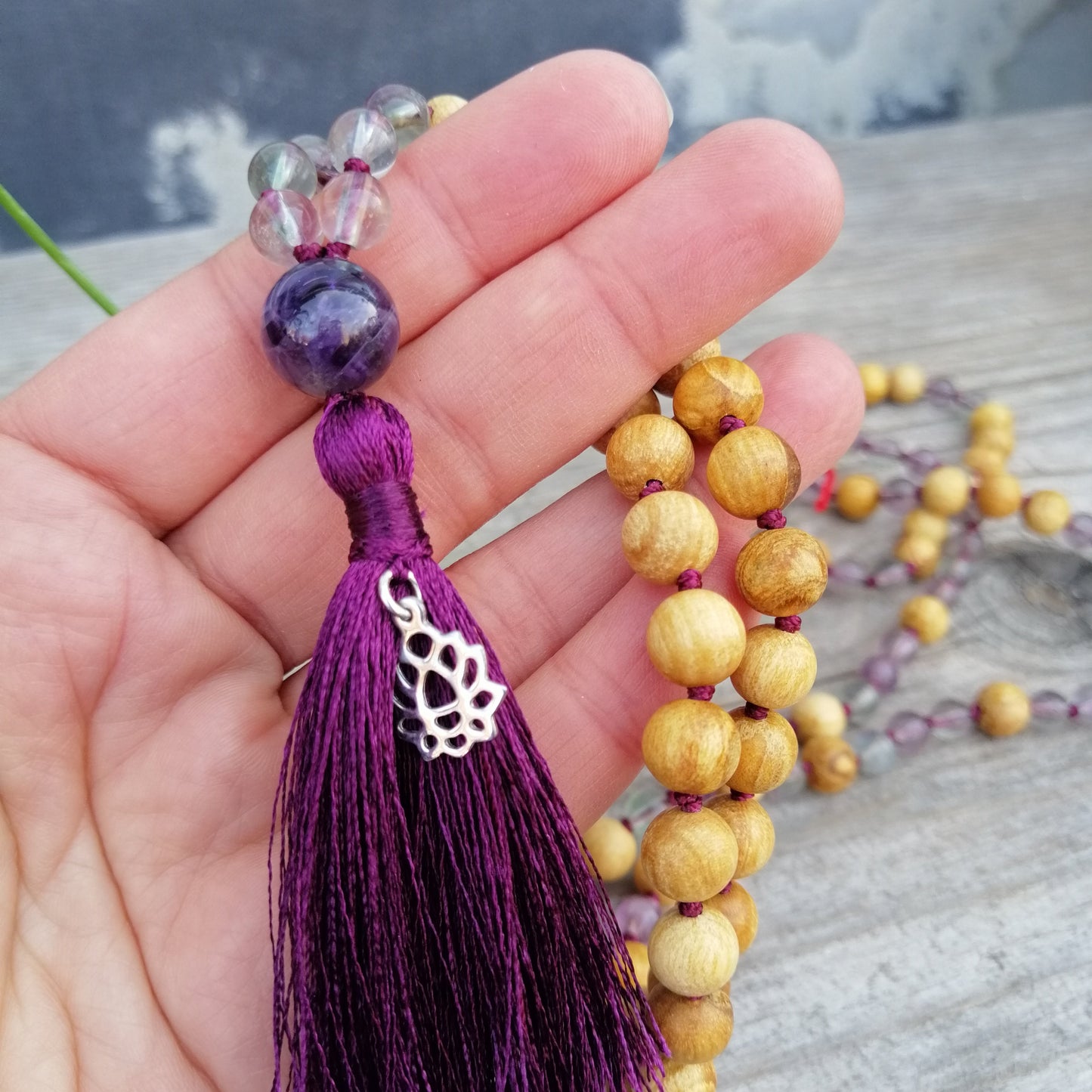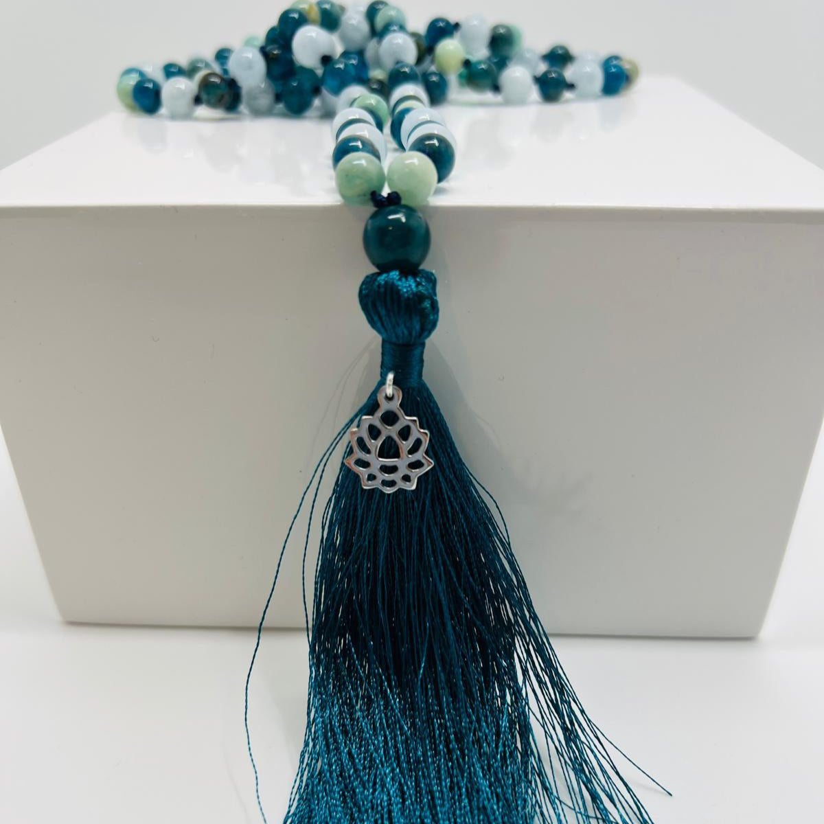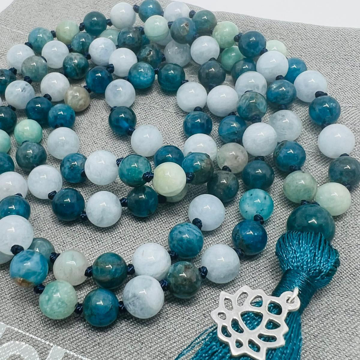 Unsere Mala-Ketten werden hier in Braunschweig von Handgeknüfpt. Wenn du in unserer Auswahl nicht die passende Kette für dich findest, melde dich bei uns. Wir fertigen gern nach Kundenwunsch - oder du machst sie dir einfach bei einem unserer Mala-Knüpf-Kurs-Abende selbst.