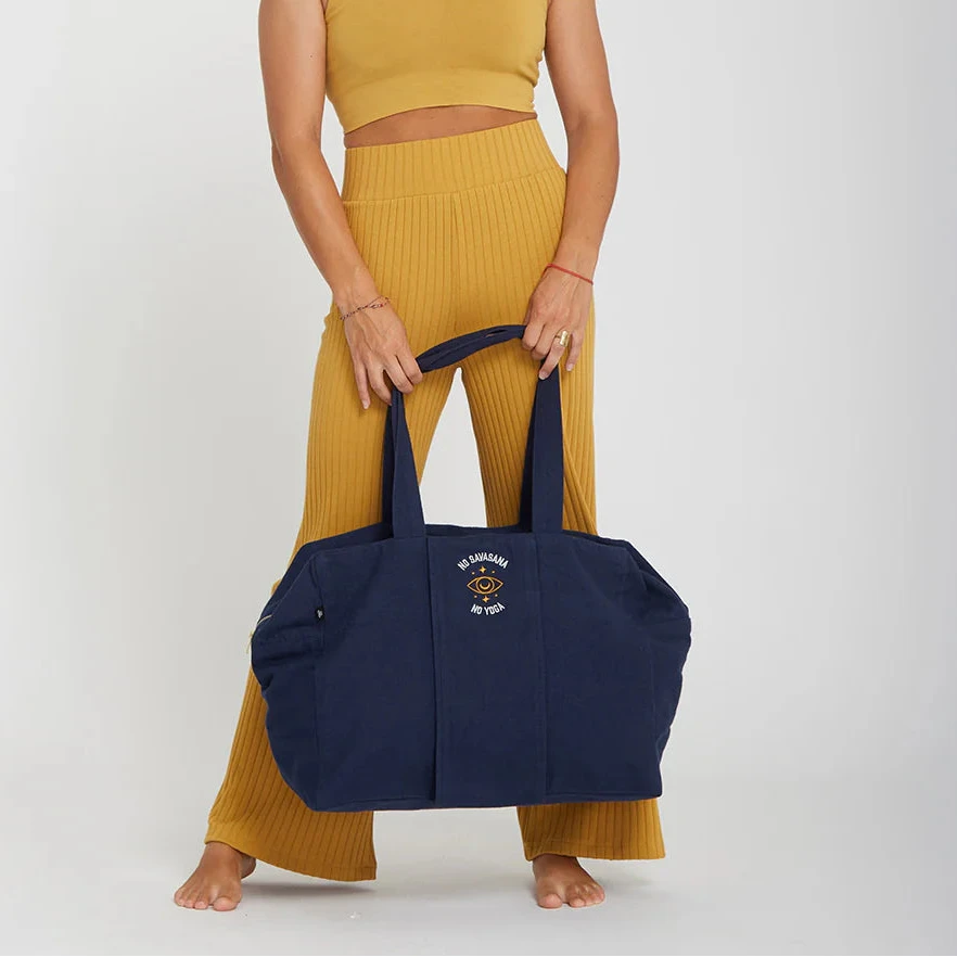 Die geräumige Wochenendtasche aus Bio-Baumwolle: Der perfekte Begleiter für Deine Ausflüge und natürlich auch zur Yogapraxis.