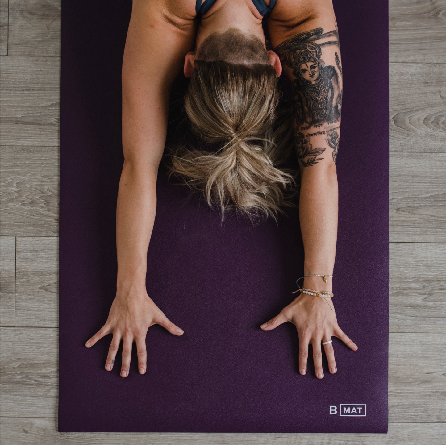 Der Vorteil der B-Mat ist die Breite: mit 66cm ist sie ganze 6cm breiter. Das macht z.B. im Shavasana einen großen Unterschied, da deine Hände nicht neben der Matte auf dem Boden liegt, sondern auf deiner Matte! Auch beim Yin Yoga super.