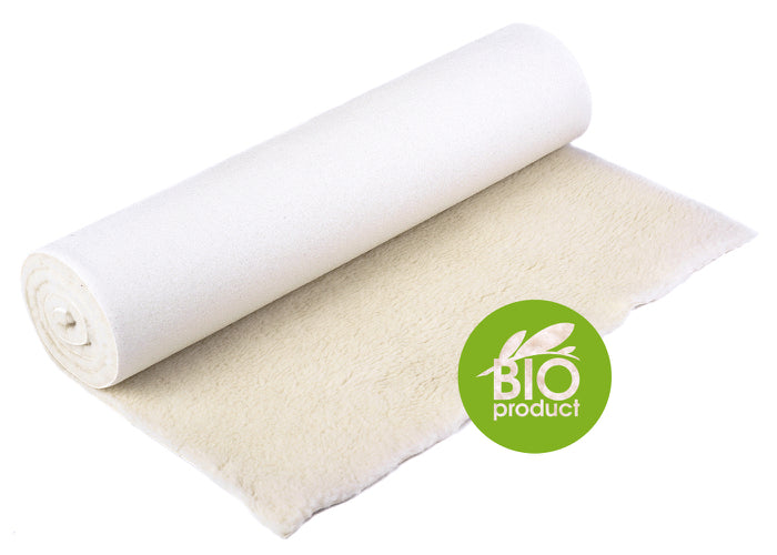 - Oberseite: Reine Bio Schafschurwolle, besonders weich, warm und dicht